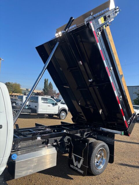 2024 Ram 5500 SLT 4×4 Dump Truck, !!Unused New Rig Up!!, SLT Model, 6.7L Cummins Diesel, Allison Auto, Pw, Pl, A/C, Tilt, Cruise, Bench Seat w/ Console, Factory Command Start, 19,500 lbs GVW, HD Aluminum Running Boards, c/w; Westpoint 11 ft Dump Box (2-way Tailgate, Fold Down Sides, Electric/Hydraulic 12 Ton Hoist, LED Lights, Powder Coated, Rear Hitch Receiver, Tarp, Plus More), Rigged and Ready to Go to Work!, Stk #06946