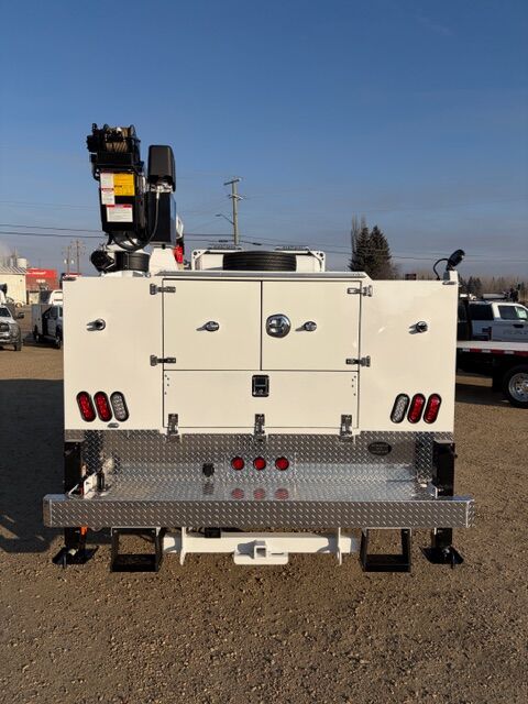 2025 Ford F550 4×4 Service Truck, !!Unused New Rig Up!!, Super Cab, XLT Model, 6.7L Diesel, Auto, Loaded, Backup Camera, Factory Command Start, Alum Wheels, Cloth Bench Seat w/ Console, Pwr Drive Seat, 19,500 lbs GVW, Aluminum Running Boards, c/w; Dematco 11 Ft Aluminum Service Body (22 Drawer Package, Webasto AT2000 Diesel Box Heater w/ Bluetooth, Air Hose Reel, Oxy/Act. Cabinet, LED Work and Cabinets Lights, Dual LED Beacon Lights, LED Buggy Whip, 35 Gal Air Receiver Package, Top Mount Spare Tire Carrier, Bolt Bin Divinders), Cobra 5500RSE Crane w/ Wireless Remote, VMac DTM70 (70 cfm PTO mounted Air Compressor), Plus More, Rigged and Ready to go to Work, Stk #54562