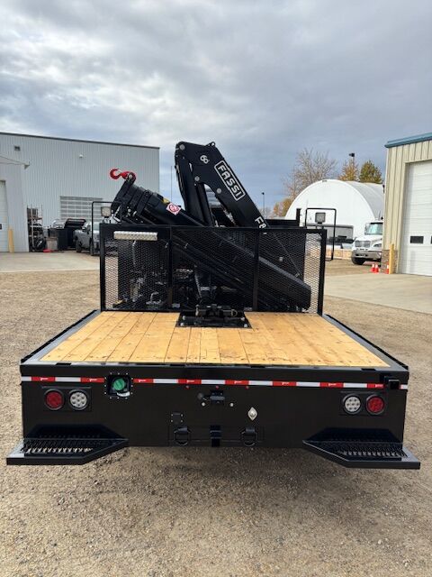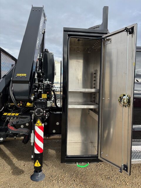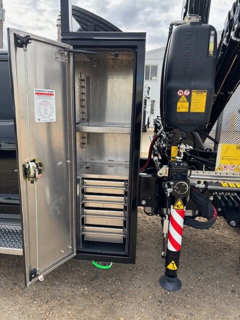 2025 Ford F550 XLT 4×4 Picker Truck, !!Unused New Rig Up!!, Supercab, 6.7L Diesel, Auto, Loaded, Big Screen, Pwr. Bucket Seats w/ Console, Alum. Wheels, Back up Camera, Factory Command Start, 19,500 lbs GVW, Aluminum Checker-plate Running Boards, c/w; Fassi F85B.0.24 Picker (Lifts 8267 lbs @ 6 ft 7 inch and 1135 lbs @ 37 ft) Ventures Picker Deck (20 inch Wide Aluminum Cabinets, 7 ft Deck w/ Under Mounted Tool Boxes, Flip Over 5th Wheel Hitch, LED Work Lights, Top Mount Spare Tire Carrier, Plus More), Comes with Fresh CVIP Inspection, Stk #85788
