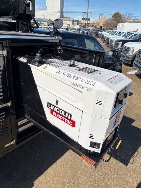 2025 Ram 5500 SLT 4×4 Service Truck, !!!Unused New Rig Up!!!, 6.7L Cummins Diesel, Auto, Loaded, Crew Cab, Cloth Bench Seat w/ Console, Factory Command Start, Backup Camera, 19,500 lbs GVW, Aluminum Wheels, Alum. Running boards, c/w; Dematco 11 ft Aluminum Service Body, (22 Drawer Package, Webasto AT2000 Diesel Cabinet Heater, Oxy./Act. Cabinet, LED Work & Cabinet Lights, LED Beacon Lights, Buggy Whip, 35 Gal Air Tank, Top Mount Spare Tire Carrier, Air Hose Real, Pull Out Welder Bed, Plus More), Cobra 5500RSE Crane w/ Wireless Remote, Lincoln Ranger Air 260MPX Multi-Function (40 CFM Rotary Screw Air Compressor, 260 Amp Welder, 9 Kw Generator, 12/24V Battery Charger / Crank Assist), Comes with Fresh CVIP Inspection, Stk #72732, AMVIC Licensed Dealer